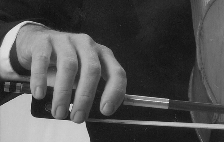 A cello bow hand should feel very natural and relaxed. If you hold your hand in the air and let your fingers relax, they will probably fall into the correct position for a good bow hand. For most people, your two middle fingers will land right around where the hair connects to the bow.